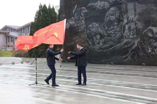 全体党员重温入党誓词,党委书记授旗,并发出“重走抗联路”号令。全体党员到杨靖宇烈士陵园祭奠,参观东北抗日联军纪念馆,近距离瞻仰“杨靖宇支队”战旗,感悟英雄伟力。